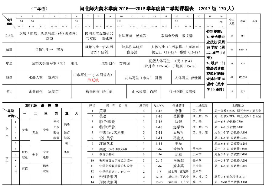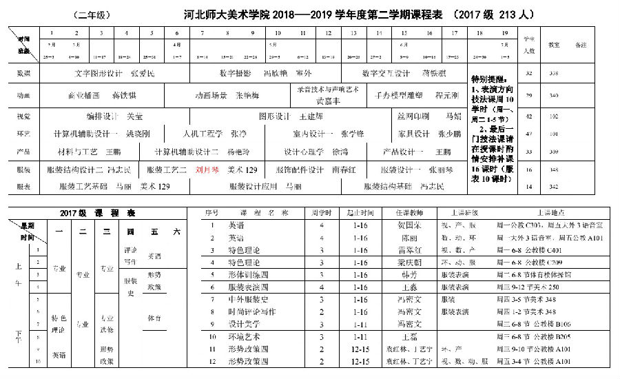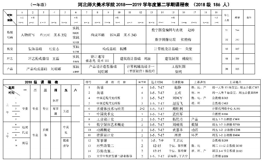 18-19学年第二学期课表20190224