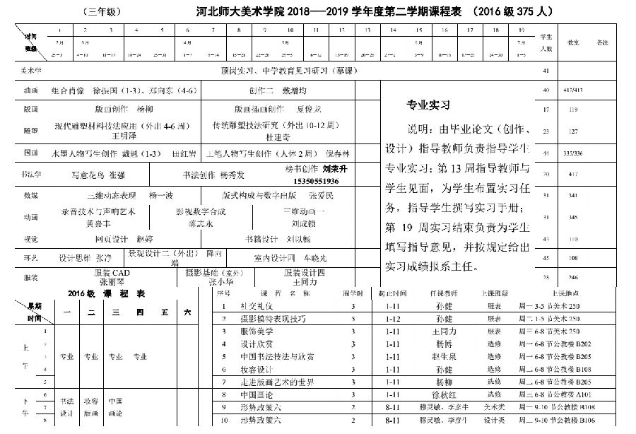 本科2018---2019学年度第二学期课程表
